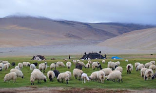 After crossing the over-5000 meter Zalung Karpo La, we enter the Ladakhi nomadic regions of Kharnak where we will hear the shrill calls of the nomads herding their Pashm goats, sheep and yaks. We are always on the look-out for the nomads with their caravans of yaks, sheep and pashm goats and their campsites of yak-hair tents, and we try to visit for a cup of salt-butter tea, fresh yogurt and dried apricots ...